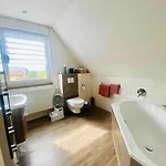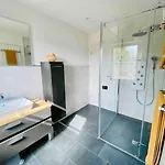 Pool, Sauna Und Blick Ins Grune está amueblada con sofá y escritorio, así como con TV con canales por satélite y TV de pantalla plana con canales vía satélite. Con ducha adaptada, un inodoro separado y bañera, el cuarto de baño también dispone de secador de pelo y toallas.